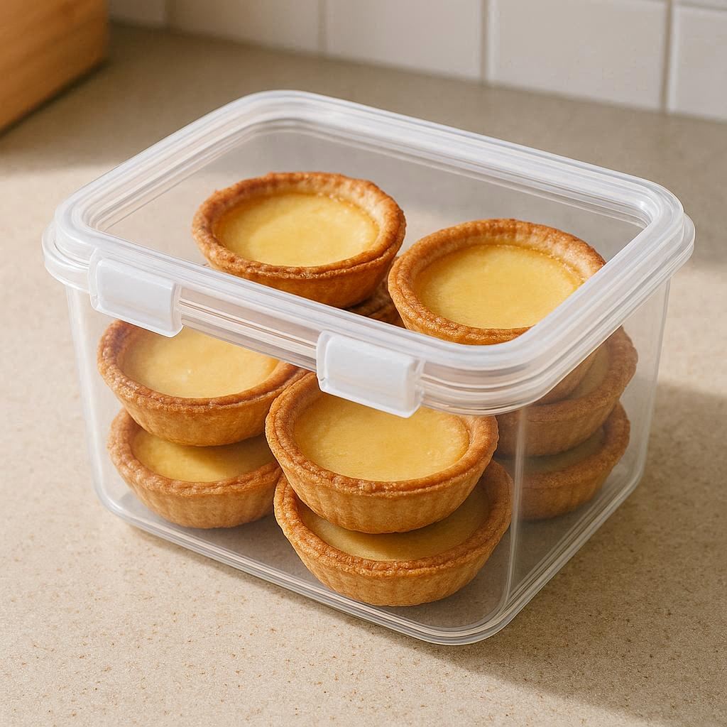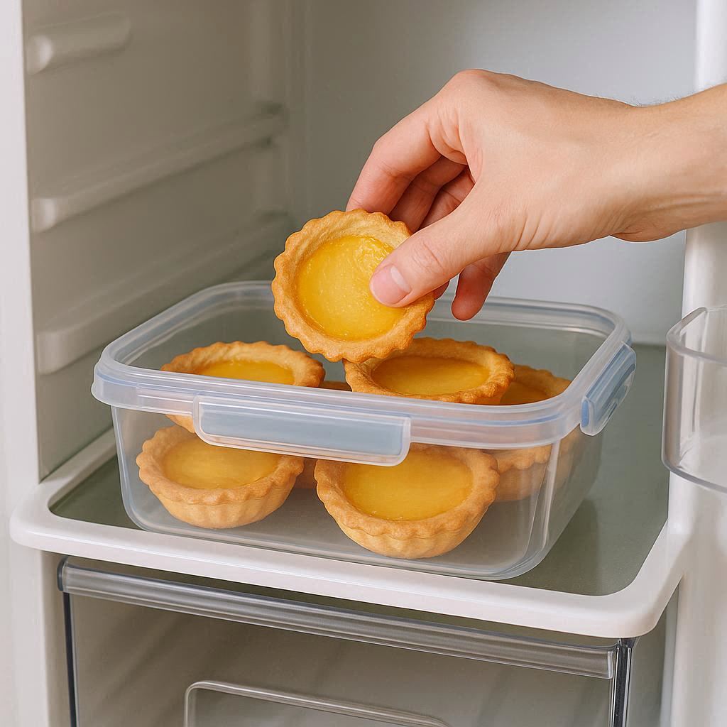 Masukkan pie susu ke dalam wadah tertutup terlebih dahulu.