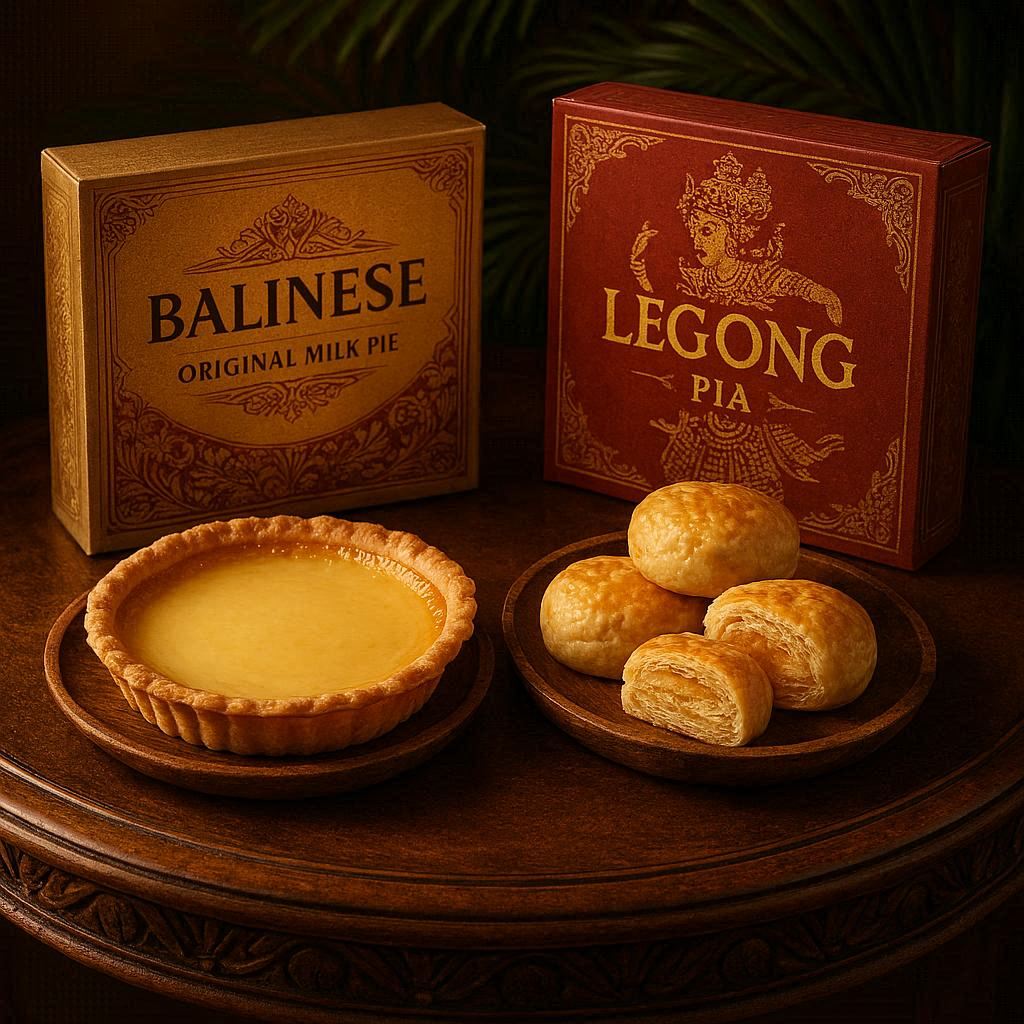 Pia Legong dan Pie Susu Asli ENAAAK itu duo yang saling melengkapi. Pia dengan tekstur berlapisnya yang tebal, dan Pie Susu dengan kesederhanaannya yang elegan. Keduanya mengajarkan kita kalau “kualitas” itu punya bentuk yang macem-macem, tapi vibrasinya satu: Ketulusan.