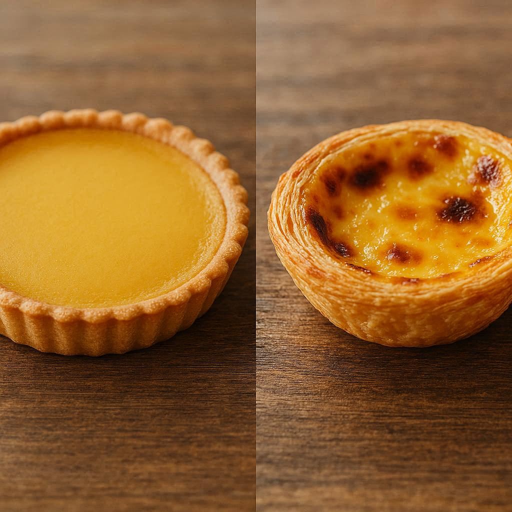 Egg tart biasanya punya custard yang cenderung creamy dan kaya rasa telur. Manisnya terasa, tapi seringkali ada aroma telur yang cukup kuat. Buat sebagian orang, ini justru nikmat. Buat yang lain, bisa terasa “berat”. Teksturnya lembut, kadang agak goyang, dan lebih tebal rasa susunya bercampur telur.