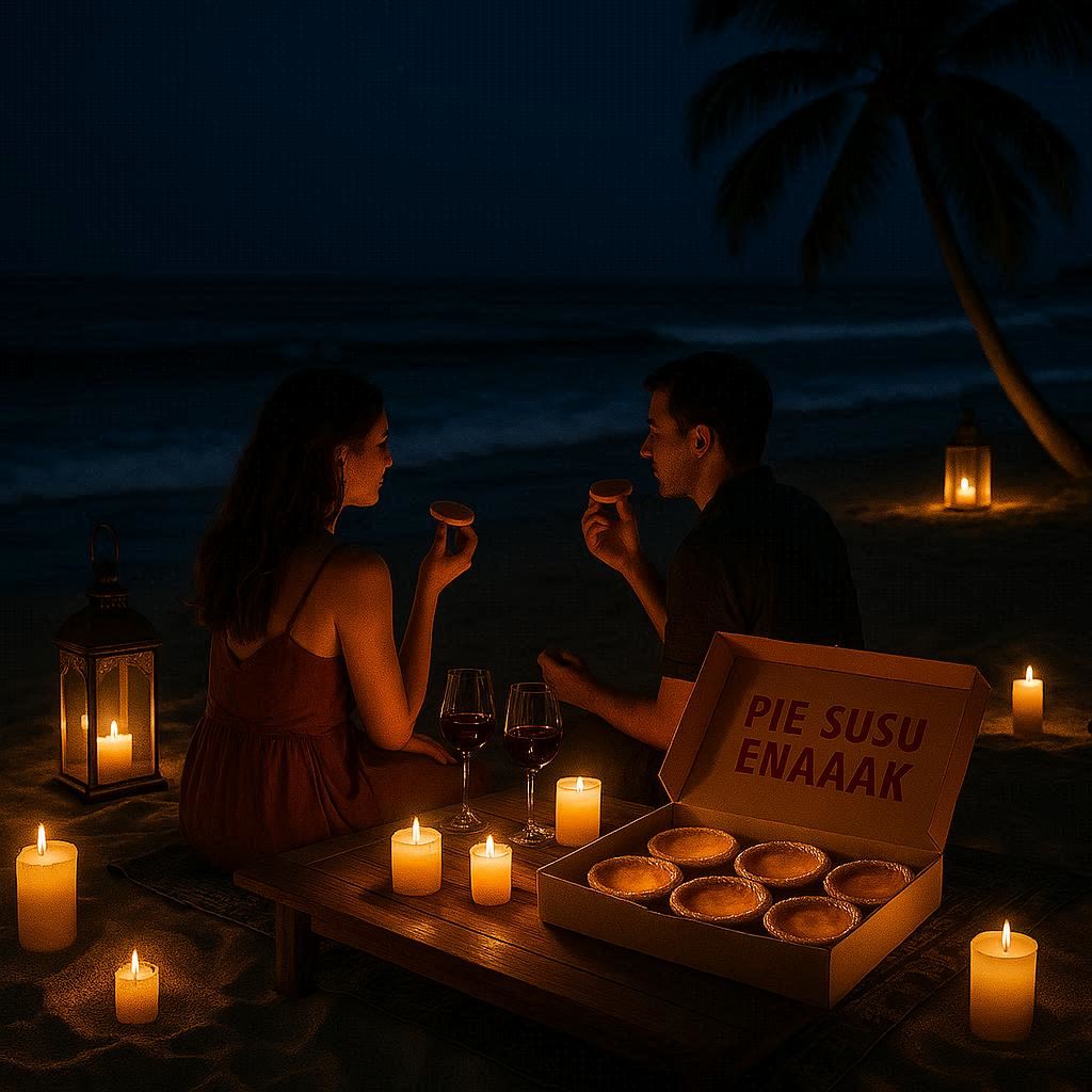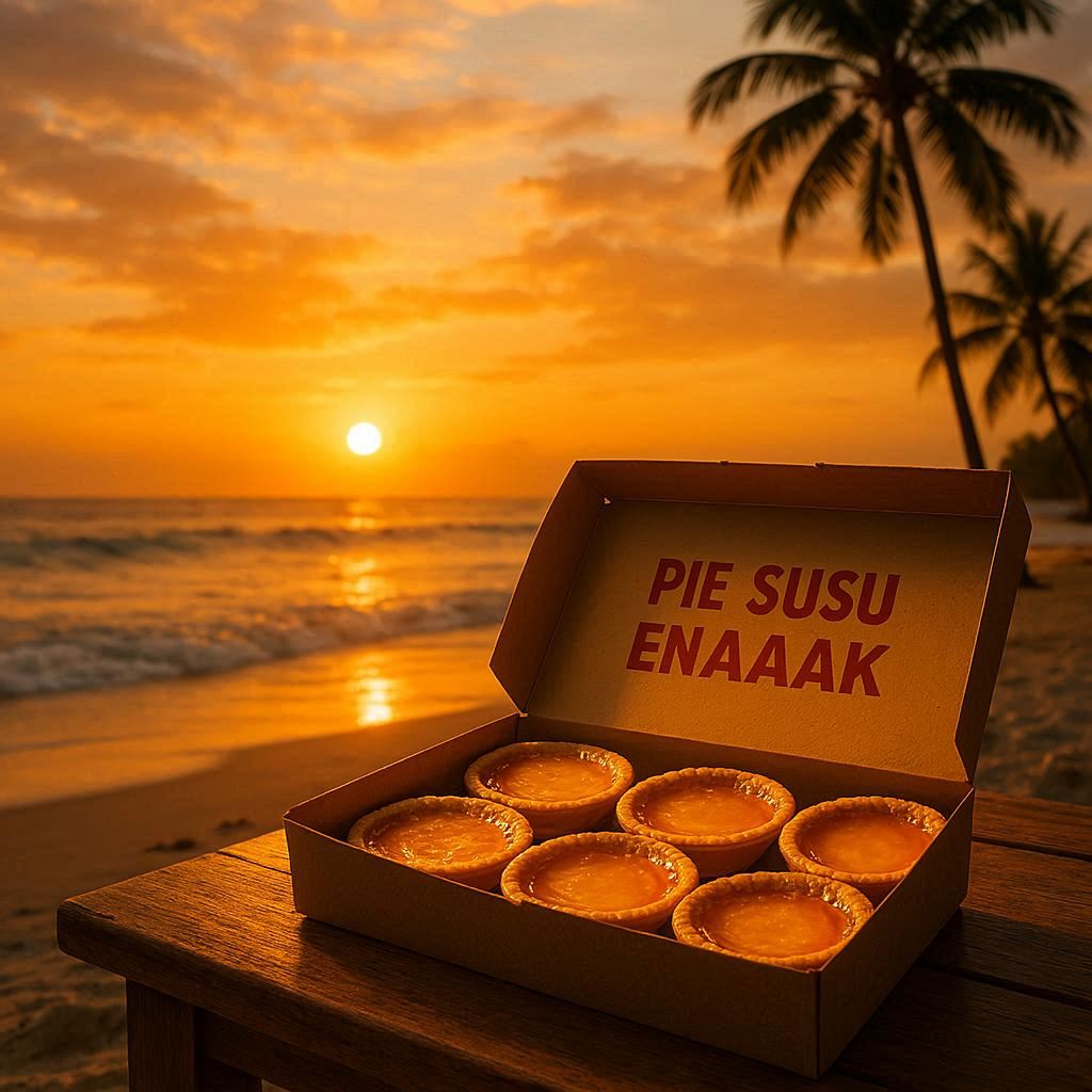 Lo baru aja main air di pantai Sanur, baju masih agak lembap, rambut acak-acakan kena angin laut. Lalu, lo buka kotak kecil berisi pie susu enaaak hangat. Aromanya langsung nyerang hidung. Wangi manis, gurih, kayak undangan buat lo segera gigit.