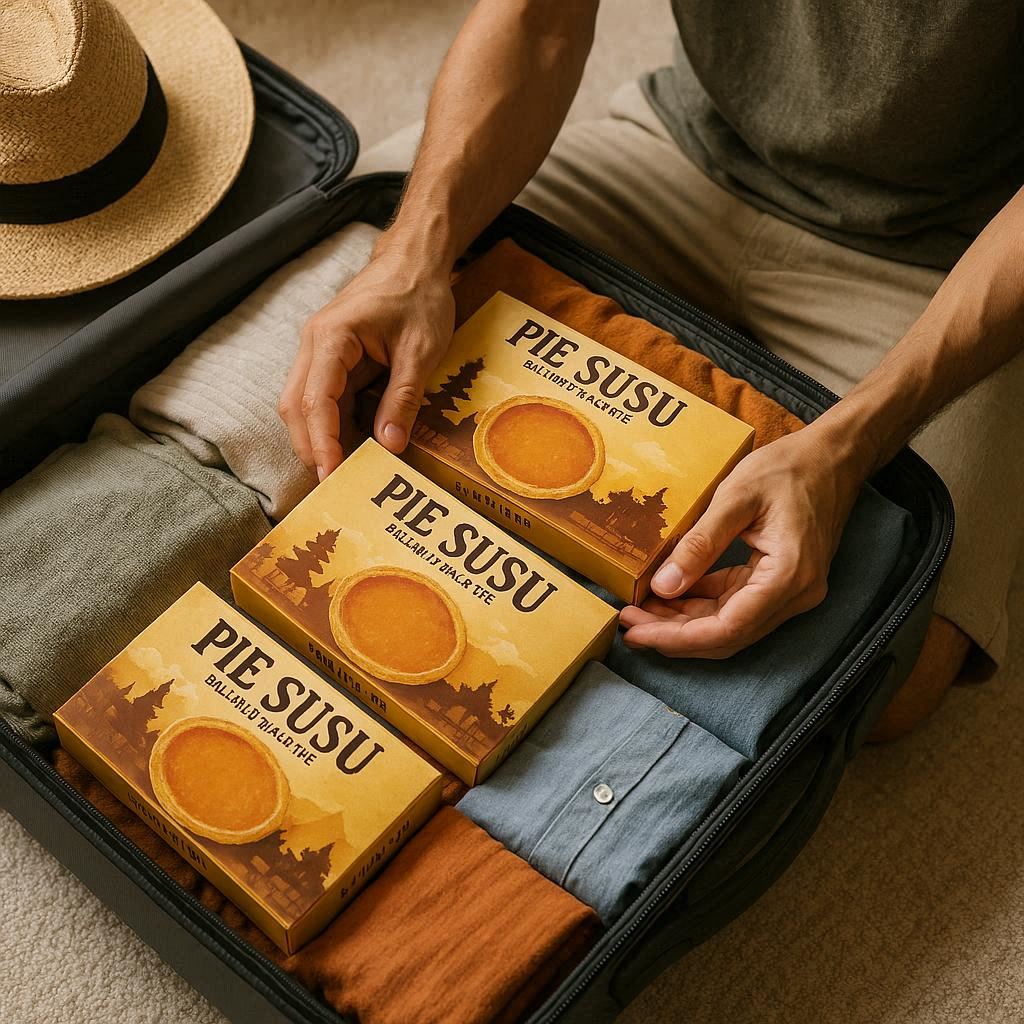 Dengan kemasan yang tepat, posisi penyimpanan yang benar, dan sedikit perhatian selama perjalanan, pie susu sebenarnya cukup aman dibawa naik pesawat.